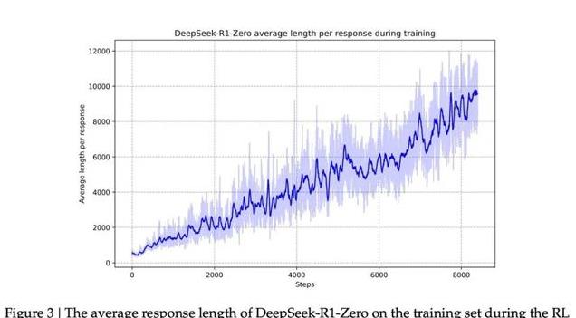与这种能力的提升相对应的是生成的回应长度,模型生成更多的思维 token 来处理问题。