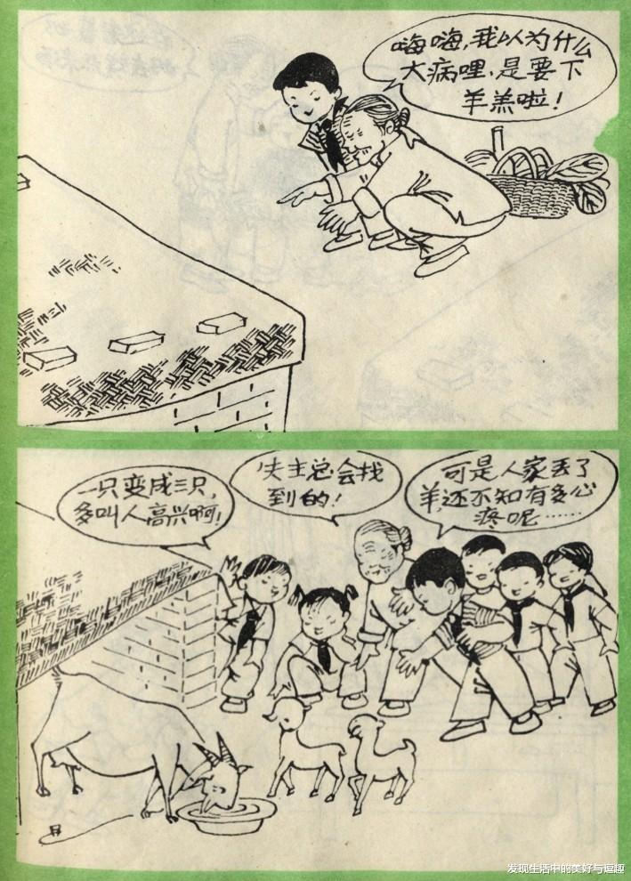 转眼功夫,山羊生了两个小羊羔,大家都过来看小羊羔,很开心的议论:“一只变成三只,多叫人高兴啊!” “可是人家丢了羊还不知有多心疼呢……”只有奶奶坚信“失主总会找到的!”