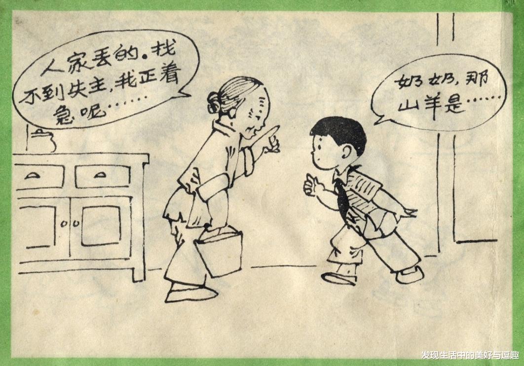 他问家中的奶奶山羊是哪儿来的?奶奶说是人家丢的,找不到失主,真着急。