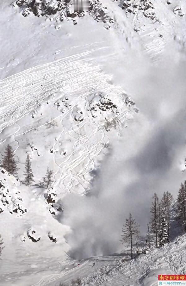 新疆吉克普林滑雪场野卡峡雪道边坡发生局部雪崩。 受访者供图 近日,新疆喀纳斯景区发生局部雪崩,有一人被埋身亡。12月2
