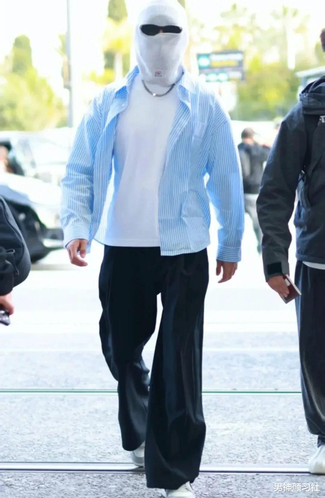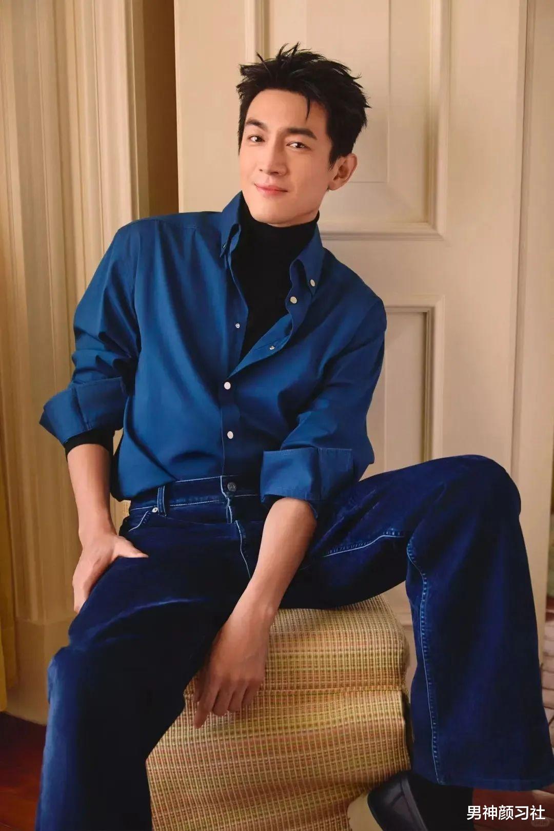魏大勋的这套也很好看,简直就是行走的清新蓝系穿搭教科书。首选单品一定是宽松牛仔衬衫,简单又不失个性,还很有松弛感。他的不同深浅的蓝色搭配,再有小面积的白色点缀,就是很清爽的样子。