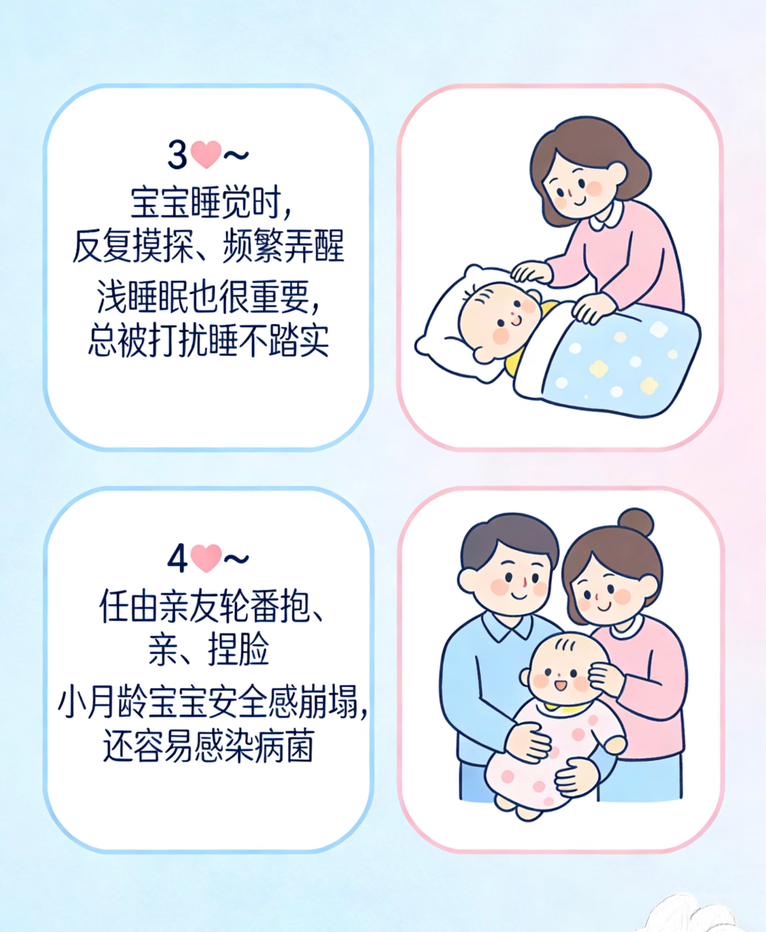 晚上哄睡的时候,为了让宝宝快点安静下来,很多妈妈会轻轻摇晃他。适当的摇晃确实能起到安抚作用,可如果力度没控制好,或者摇晃得太厉害,对他正在发育的大脑来说可不是好事。轻轻的、有节奏的拍哄,其实比摇晃更安全。