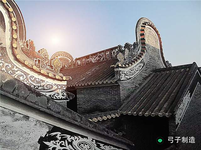 这里石板路深,老榕树垂须,镬耳山墙在夕阳下拉出长长的影子 。