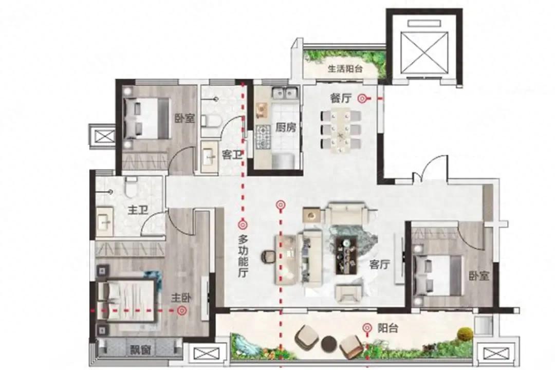 整体而言,这款户型没有固化空间功能,靠“可切换卧室+贯穿阳台”兼顾了实用性与美观度,既能满足家庭结构变化的需求,又能打造舒适的居住氛围,称其“经典灵活”完全合理。