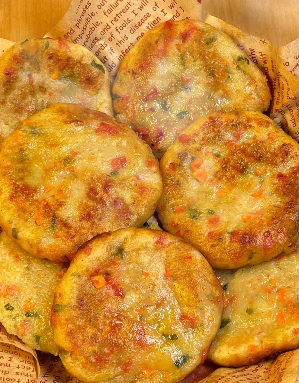 - 煎好的饼移至盘中,重复以上步骤,直到面糊用完为止。