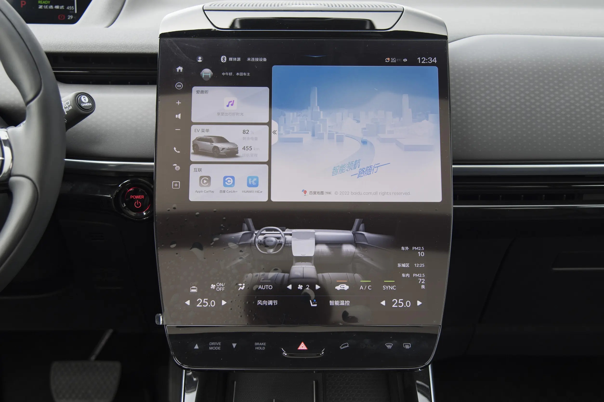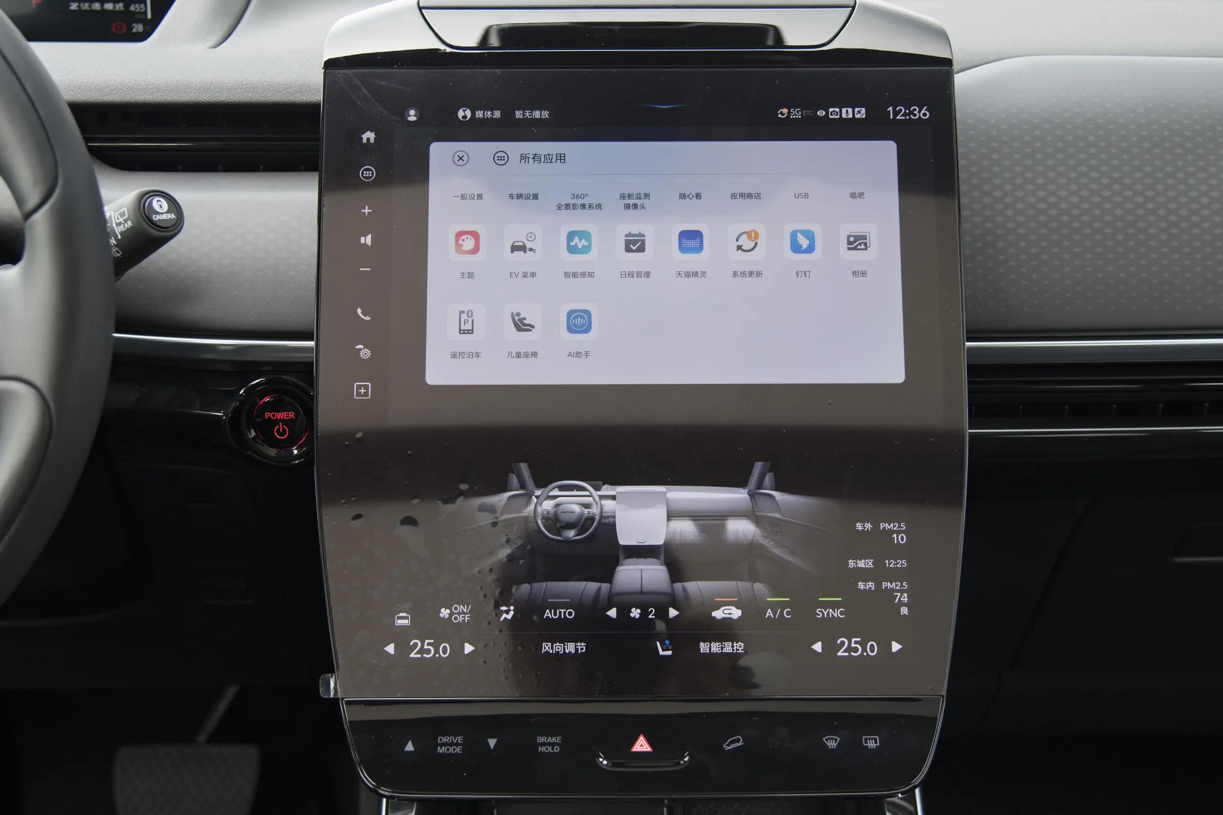 中控采用了组合式的设计,上边由12.8英寸的中控屏组合成,下方由10.25英寸空调液晶屏组成,并保留了部分快捷固定按键,这种设计可以给中控屏进行减负,在找一些固定功能时会更方便一些。