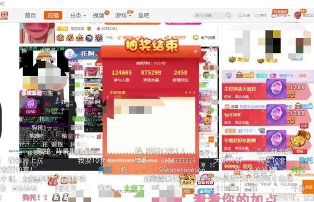 在直播间的观众通过购买直播间指定的虚拟道具,就可以参加“抽奖活动”。