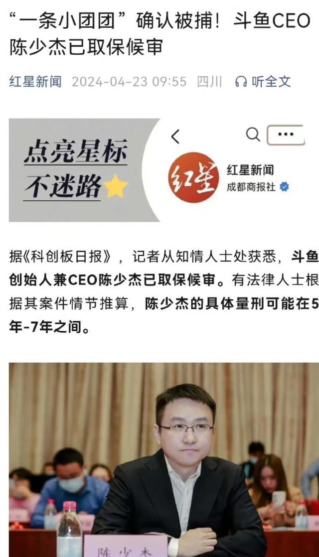 去年11月21日,斗鱼发布公告称,公司CEO陈少杰于2023年11月16日左右被成都警方逮捕。而CEO被逮捕的消息会给斗鱼带来巨大损失。