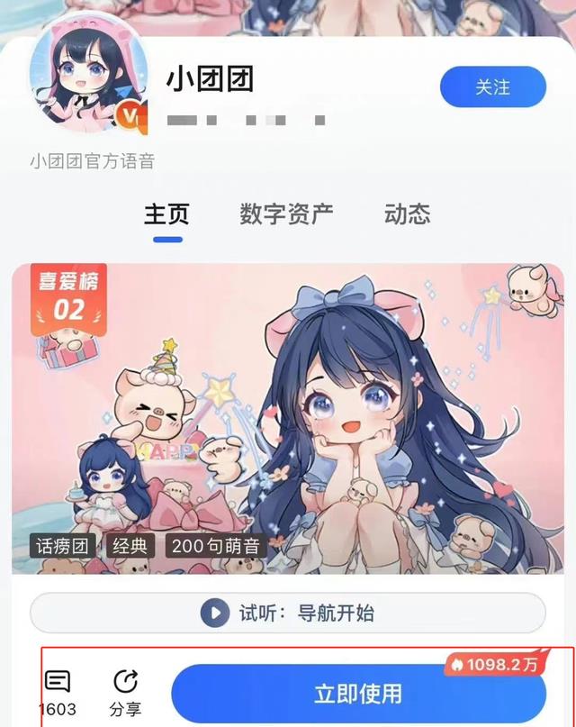 2020年9月11日一条小团团的语音包在高德地图上上线。因为其可爱又搞笑的声音,她的语音包超千万人使用。