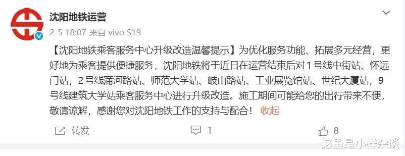 (图片来源于沈阳地铁运营微博账号截图)【沈阳地铁乘客服务中心升级改造温馨提示】为优化服务功能、拓展多元经营,更好地为乘客提供便捷服务,沈阳地铁将于近日在运营结束后对1号线中街站、怀远门站,2号线蒲河路站、师范大学站、岐山路站、工业展览馆站、世纪大厦站,9号线建筑大学站乘客服务中心进行升级改造。施工期间可能给您的出行带来不便,敬请谅解,感谢您对沈阳地铁工作的支持与配合。没用多少时间,现在已经看到了升级改造的结果了,就是和2号线奥体中心、4号线太原街站一样乘客服务中心多余空间变成了福利彩票站。