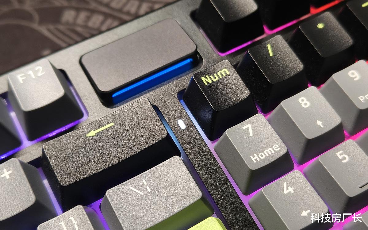 从名字上就可以看出,雷柏V700DIY-98采用98配列布局,既保留了数字小键盘,又缩小了横向尺寸。相比全尺寸键盘布局还是略有不同的,比如Delete键设计在右上角,盲按的习惯需要调整。