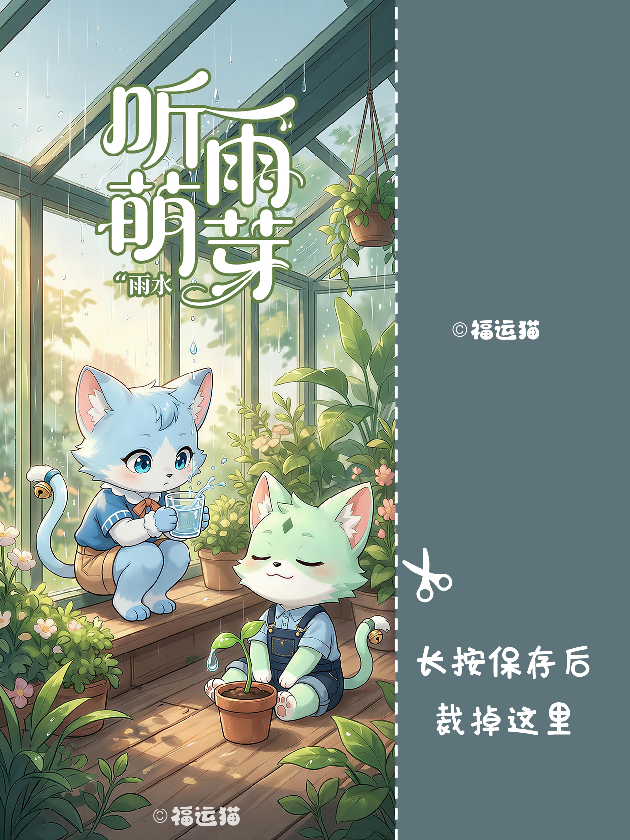雨水节气,福运猫陪你迎春光~熙和锦葵煮糖水,送财源滚滚、魅力倍增;玄墨绵雅踏雨玩,赐祈福开运、人缘爆棚;蔚珊森泽听雨声,