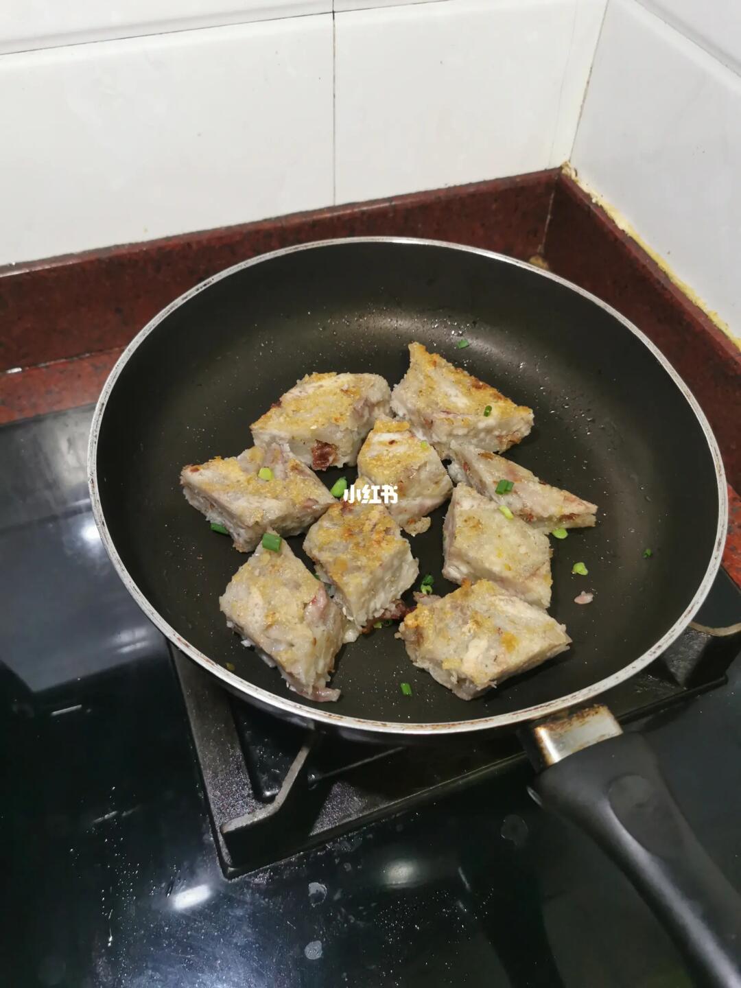 【5】、芋头糕放凉后切块,平底锅刷入少许花生油,开中小火慢慢煎至两面有点焦黄即可出锅。