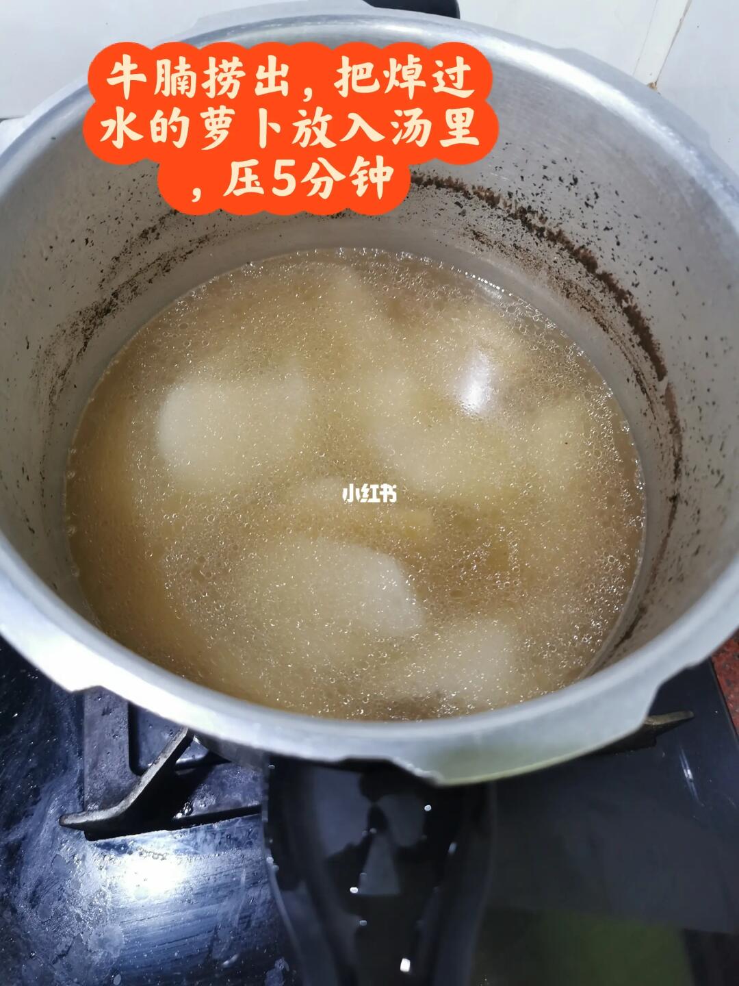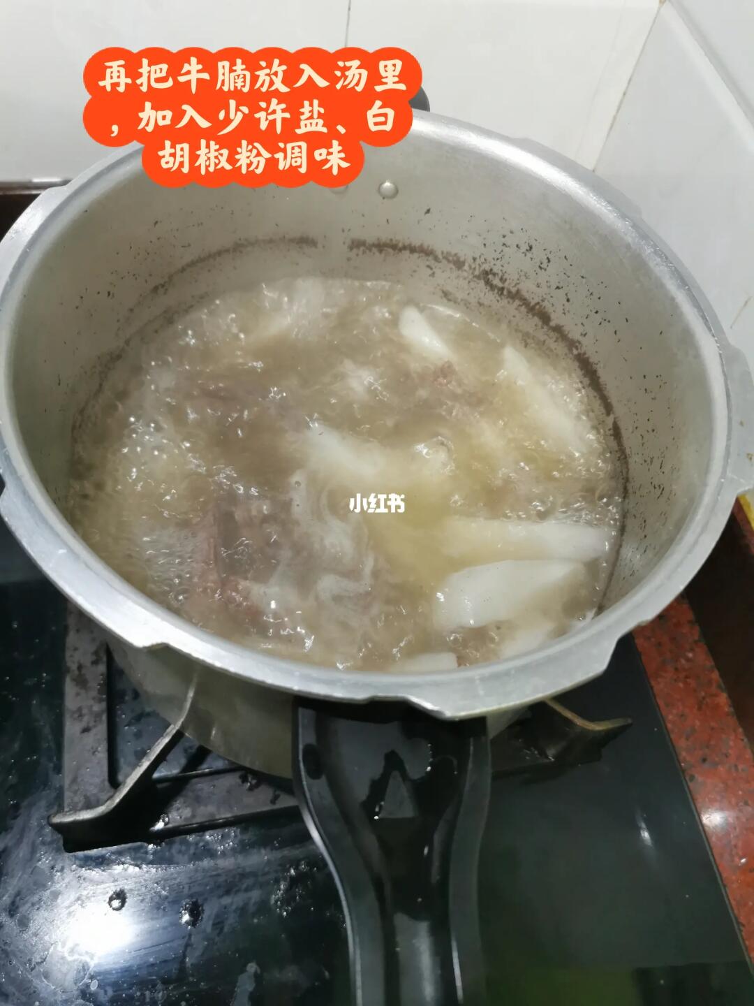 牛腩煮好后捞出,切块备用。把萝卜倒入汤里,盖上盖子压5分钟即可。然后把牛腩倒入汤里,加入少许盐、白胡椒粉搅拌均匀即可。