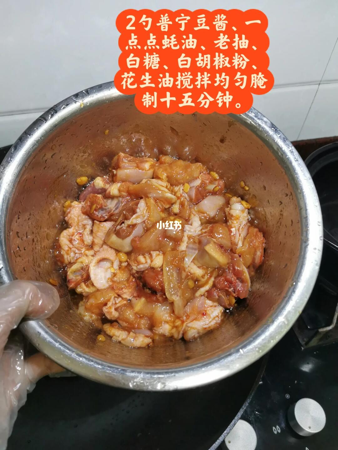 我不允许有人不知道这道菜,普宁豆酱啫鸡,一定要给我做起来!!!这道菜绝对能惊艳到家人!!? 连我挑吃的小侄都在问我,什么时候再做普宁豆酱啫鸡,他说太美味了! [派对R][派对R]普宁豆酱啫鸡 把土鸡砍块,加入两勺普宁豆酱、一点蚝油、老抽、白糖、白胡椒粉、花生油搅拌均匀腌制十五分钟。 砂锅烧热,加入姜粒、蒜粒、红葱头炒香,加入腌制好的鸡肉盖上盖子中火焗10分钟,把水份焗干,加入青红辣椒、蒜苗点缀一下即可。