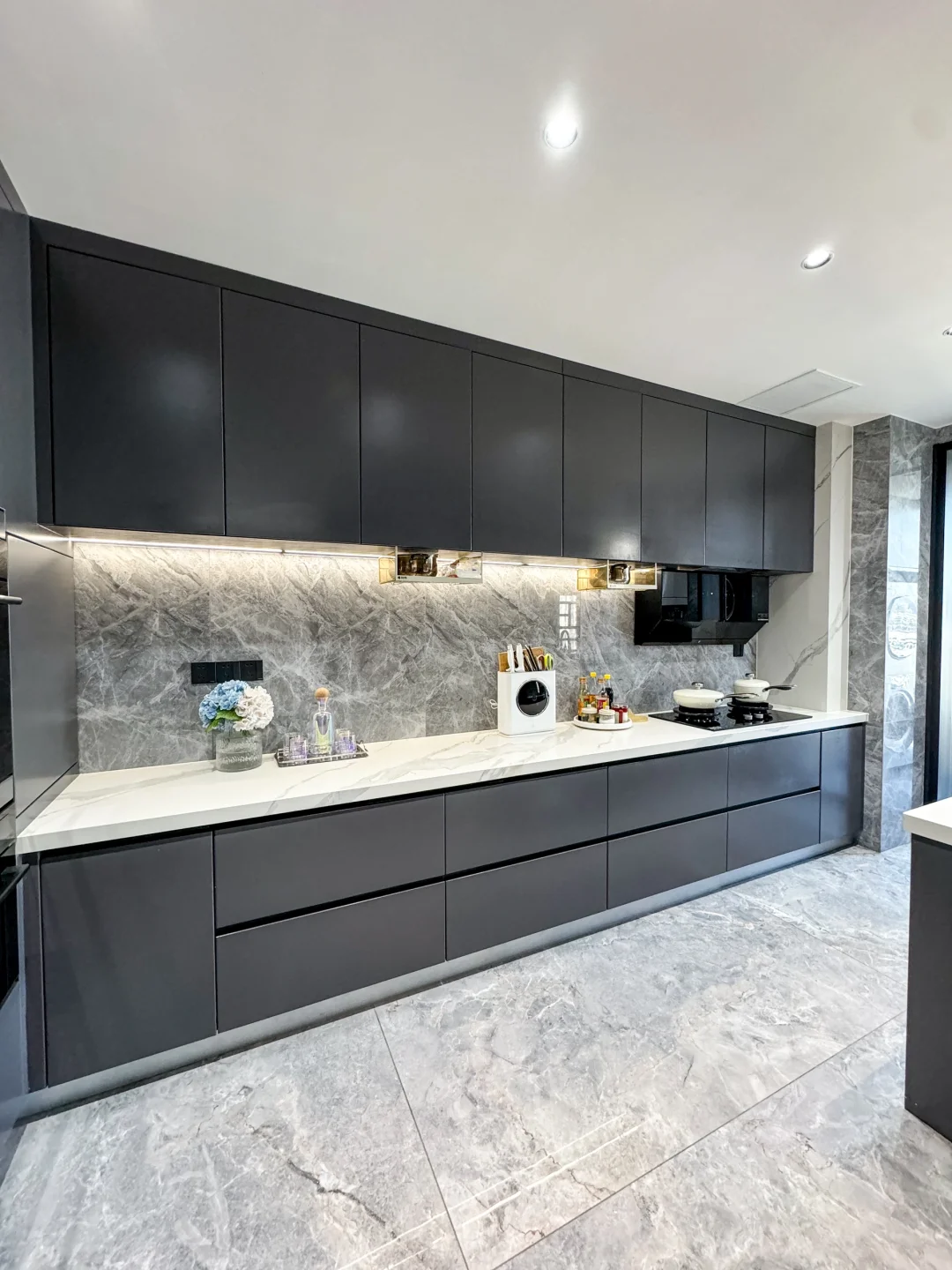 🔸橱柜板材优先选用防火防水材质,尤其炉灶周围的岩板更要有阻燃功能
