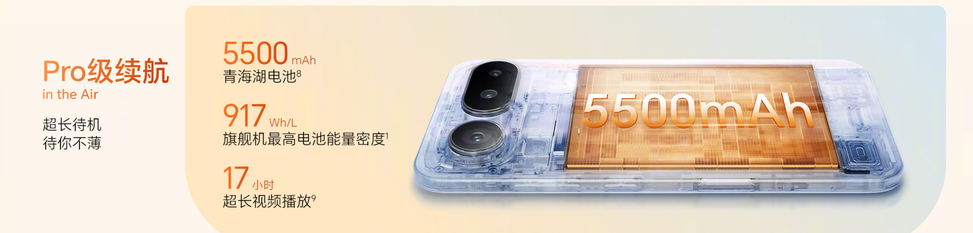 影像和续航是最让人意外的部分。以前超薄机大多是“扫码相机”,但它塞进了全焦段三摄:5000万超大底主摄拍夜景清晰,6400万潜望长焦能拉近距离,还有安卓首个AI变焦阵列闪光灯,人像补光自然不生硬,AI闪光大师能直出法式柔光大片,普通用户也能轻松出片。续航更颠覆认知,5500mAh青海湖电池+917Wh/L能量密度,打破了“轻薄必短续航”的魔咒,配合80W有线+50W无线快充,全天在外也不用带充电宝。