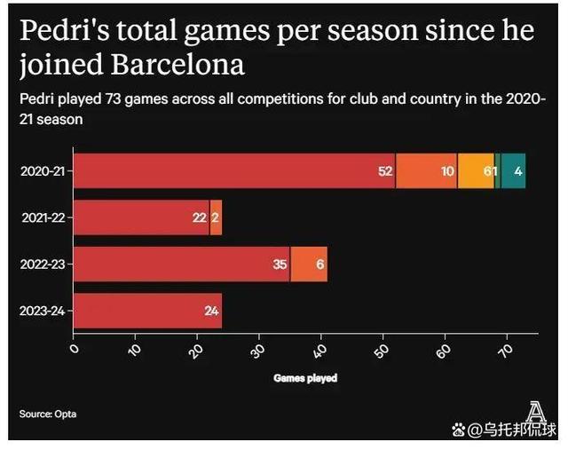 在经历了最近多次伤病问题之后,如果我们回顾佩德里2020-21赛季在巴萨取得的突破,这种挫败感也许会更加强烈。那个赛季,他为俱乐部和国家队出场72次,没有遭遇过任何严重伤病。从那之后,他已9次受伤,并缺席了71场比赛。