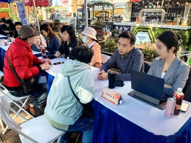 除了医疗义诊,街道志愿服务区也热闹非凡。来自黄浦区青年律师联谊会的江涛律师、刘沁茹律师、杨东京律师、邓飞律师,以及来自上海邦信阳律师事务所的刘芳律师,携手为南京东路街道辖区的企业、白领及市民们带来了专业的法律服务,满足大家在公司税收、企业商事、劳动争议、遗产继承、婚姻家事、房地产、动拆迁等方面存在的法律咨询需求。
