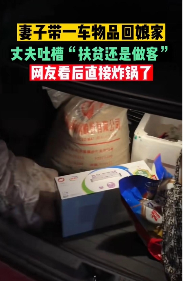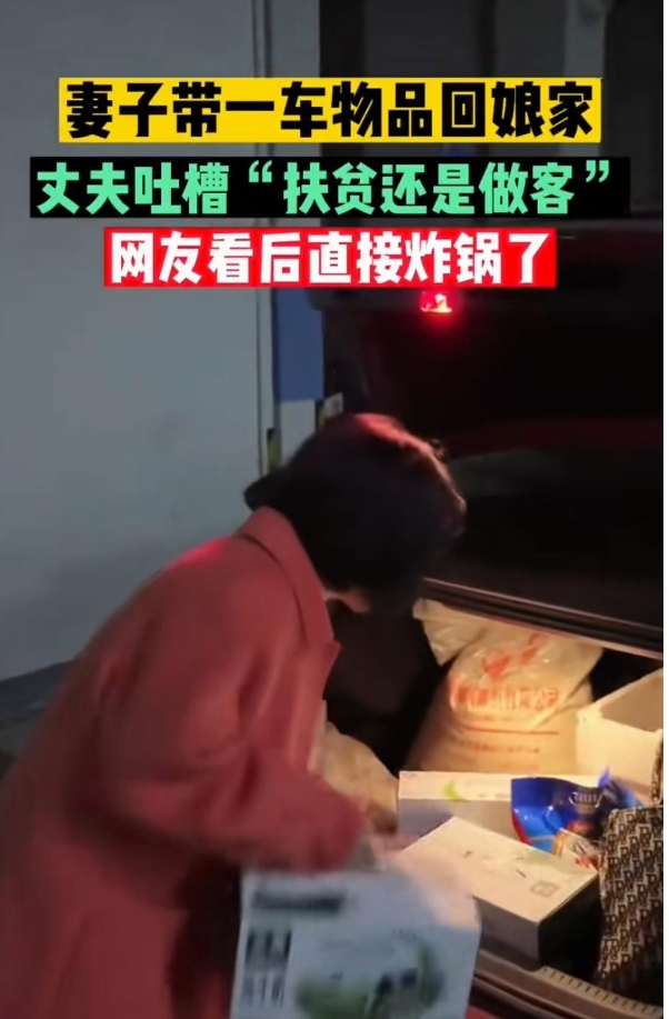 妻子带一车物品回娘家,丈夫吐槽"扶贫还是做客 网友看后直接炸锅了 网友:这个男的