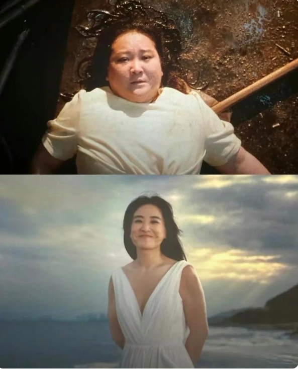 贾玲在电影片尾穿上了白色露背连衣裙,面朝大海,笑起来的梨涡和披肩长发让人赏心悦目