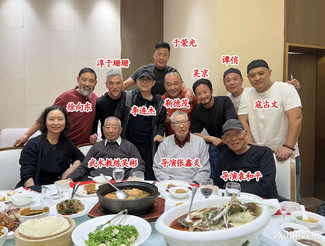 在合照中,吴京、李连杰侧身让位,于荣光站最后面!