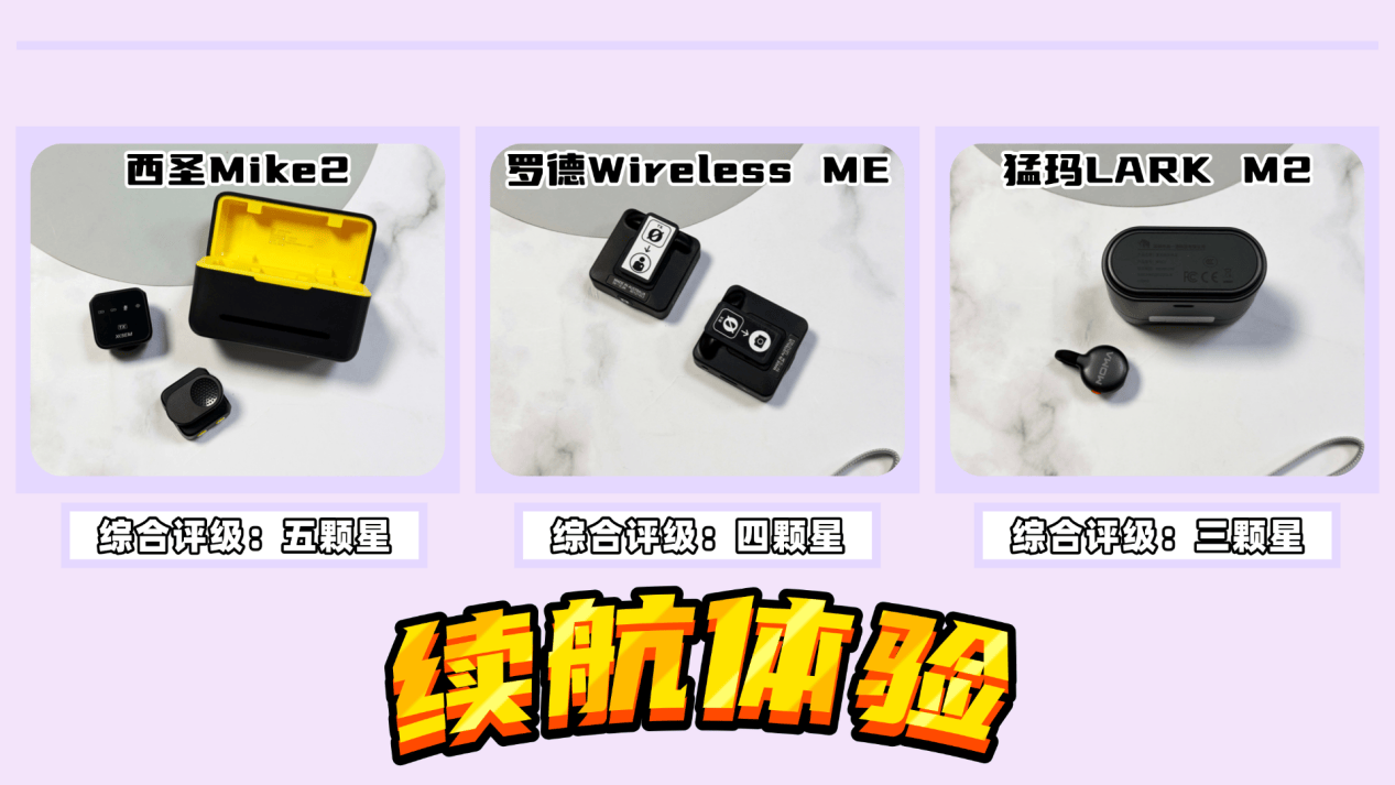 西圣Mike2、罗德Wireless ME、猛玛LARK M2哪款更值得选?本次实测表明,三者各有适配场景:罗德Wireless ME依托品牌口碑,轻量化设计易上手,但续航、降噪表现难以满足高强度创作;猛玛LARK M2续航中等,可覆盖短时间拍摄需求,但收音、降噪核心性能不足;而西圣Mike2在多环境收音、复杂噪音过滤、全场景续航上均有显著优势,且性价比突出,不管是新手创作者还是有专业需求的用户,适配性都更高。建议选购时优先关注真实场景下的实测表现,而非仅看官方参数,贴合自身创作习惯才是关键。