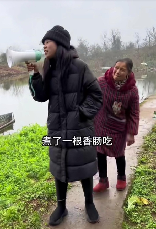 看着姑姐要发火,媳妇忙说我的婆子妈,也就是你的亲妈,说我一个人煮香肠吃是自私。