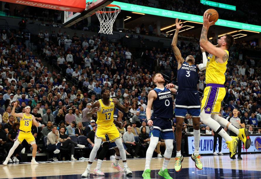 下半场,东契奇回到场上有些晚,第三节文森特先首发,东契奇替补登场,这一节湖人和森林狼打得十分胶着,东契奇单节5投2中拿到5分3篮板3助攻,但卢卡多次出现失误——被爱德华兹抢断而且沦为华子暴扣的背景板,单挑戈贝尔被抢断还在防守端赔上犯规。