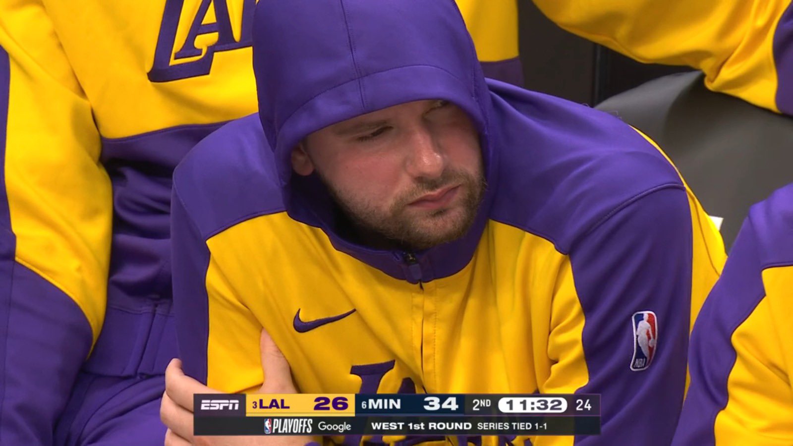 末节詹姆斯连续三记三分继续带领湖人保持悬念,东契奇也得分对飚森林狼,可生死时刻,湖人外线连续打铁,从最后4分19秒到比赛还剩39秒,湖人220秒被森林狼13-1带走比赛,最终湖人104-116输给森林狼,系列赛总比分1-2落后。