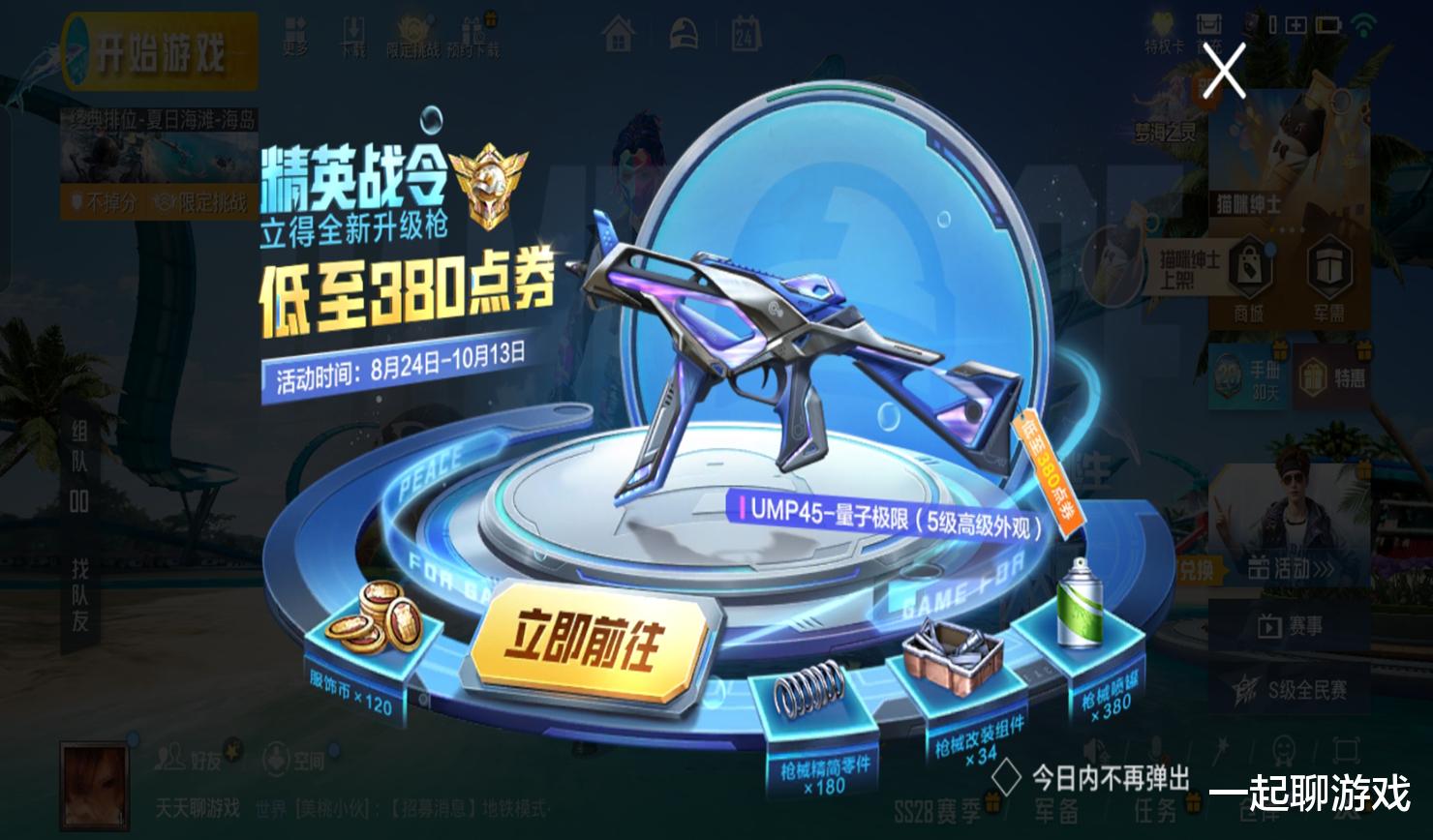 聊完了出现“两级反转”的7级烟雾弹后,再来说一下目前的最新进度,一个是战令5级枪,一个是和平集市,光子又以迅雷不及掩耳之势“上新”了!