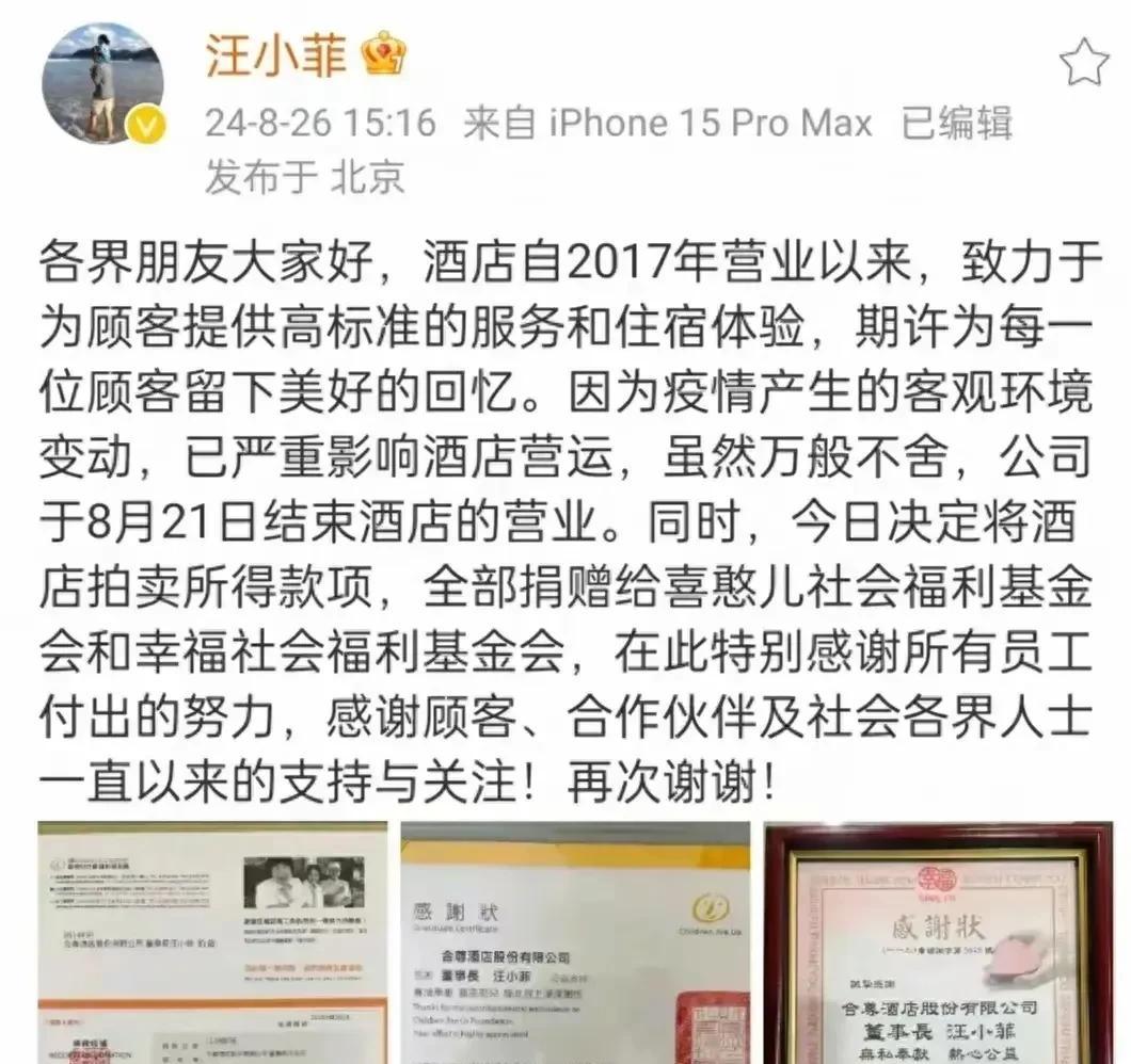 当年,汪小菲经营S Hotel失败,最终选择将其出售并将所得款项全部捐赠给了福利院,S家一分钱都没拿到。