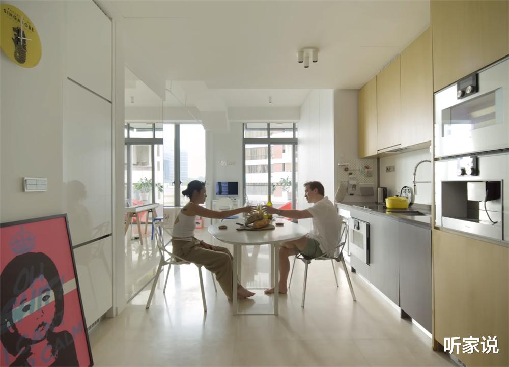 能拆的隔断墙都拆掉后,厨房和餐桌也变成了开放式格局。