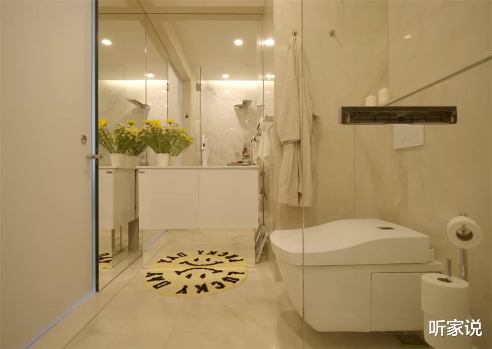 最后说说家里的卫生间,它藏在了镜面墙的后面。