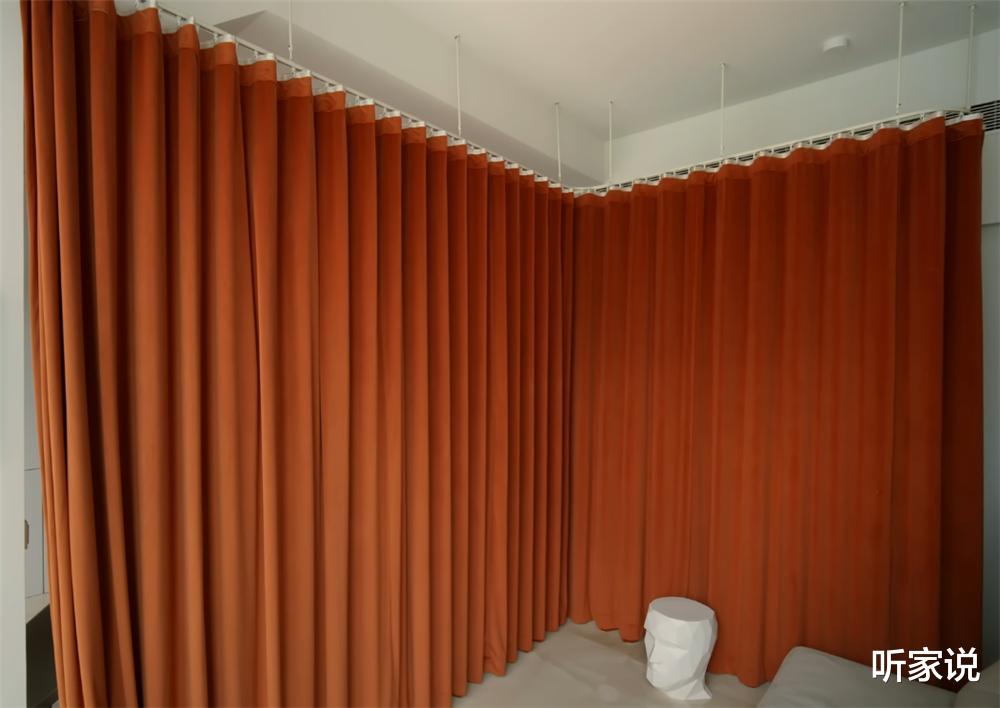 家里的客厅同时承担着卧室的功能,帘子本身的目的和儿童房一样,就是为了将其完全围起来,形成一个相对安静、隐私的卧室空间。