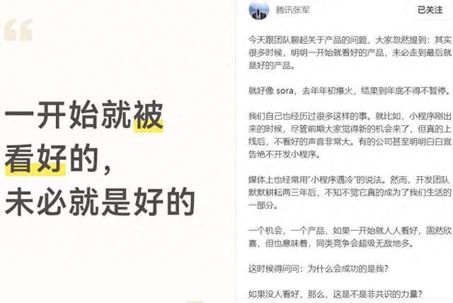 可以看到近几个月腾讯开启了各种调整,包括挖来了姚顺雨等核心人员,张军也开始发声,表示一开始就看好的产品,未必就是好的。