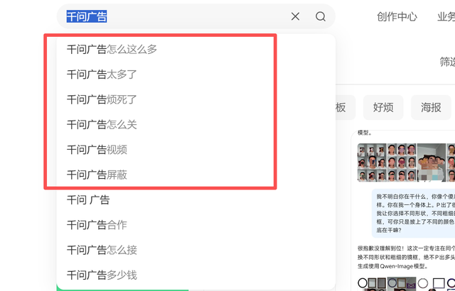 当你打开小红书搜索千问广告的时候,关联词就是最好的反馈。