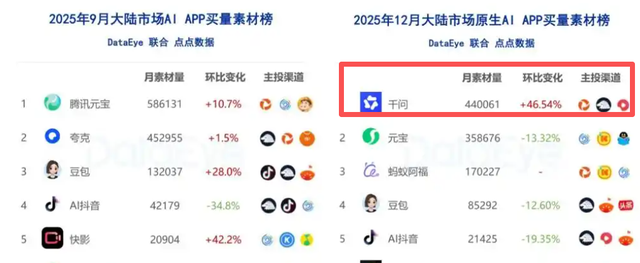 腾讯元宝作为目前腾讯主推的产品,其实很难超越豆包,千问大概率也会是这种结果。