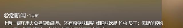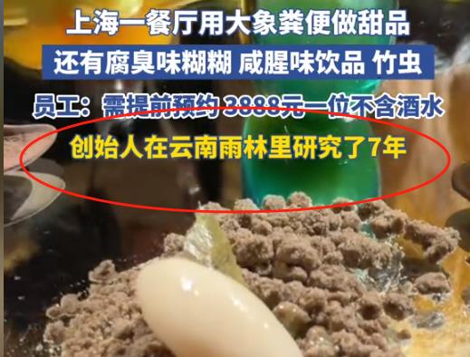 [1].潮新闻抖音官方账号《上海一餐厅用大象粪便做甜品,还有腐臭味糊糊 咸腥味饮品 竹虫 员工:需提前预约 3888元一位不含酒水,创始人在云南雨林里研究了7年》2025.4.9