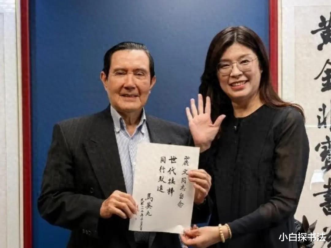 众所周知,第一次拜访,马英九题字内容“世代接棒,同行致远”,这幅题字内容,在书写的格调上,也让人感觉到耳目一新。