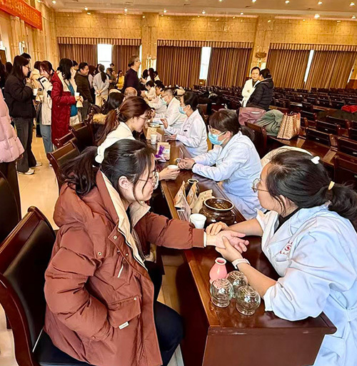 义诊现场秩序井然、气氛热烈,各科室咨询台前络绎不绝。中医科专家通过望、闻、问、切传统方法,结合体质辨识,为职工提供个性化调理方案;针灸推拿科专家带来推拿与美容针等中医适宜技术体验;医疗美容科则围绕皮肤健康、科学护肤等问题,为职工提供专业咨询与实用建议;疼痛科与理疗科为长期伏案工作的职工提供康复指导;药械科不仅准备了多款养生代茶饮供品尝,还现场指导制作中药香囊,传递“未病先防”的中医理念,口腔科、内科、妇科也分别针对常见健康问题开展筛查与咨询,整个活动共发放代茶饮包200余份。