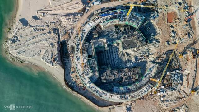目前,岛上的APEC会议中心及相关配套项目正加紧建设。整个集群占地16公顷,总投资约21.86万亿越南盾(约合人民币58亿元),涵盖会议展览中心、多功能剧院及APEC公园三大主体,由美国SOM事务所打造战略愿景规划,并担纲核心建筑设计。