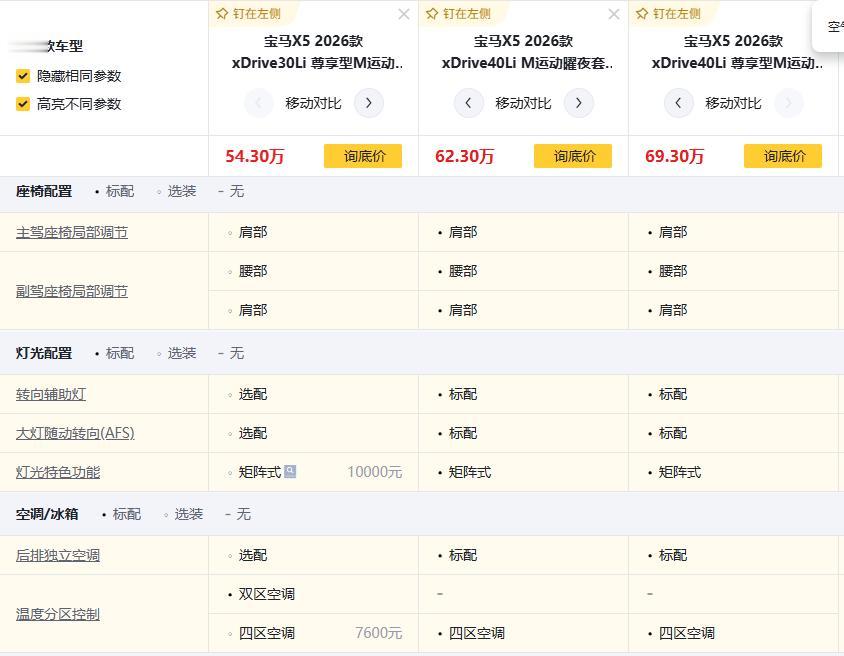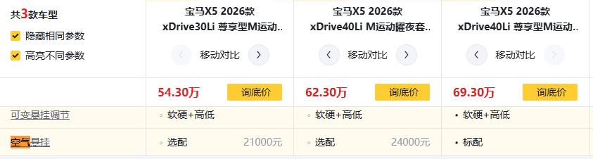 过年想买豪华中大型SUV?纠结2026款宝马X5的三款车型?宝马X5 2026款 xDrive30Li 尊享型M运动曜夜套装、宝马X5 2026款 xDrive40Li M运动曜夜套装、宝马X5 2026款 xDrive40Li 尊享型M运动曜夜套装,怎么选?直接上结论:笔者比较喜欢xDrive40Li尊享型M运动曜夜套装这款车!这三款车,官方指导价分别为59.8万、67.8万、74.8万,价差分别是8万和7万!