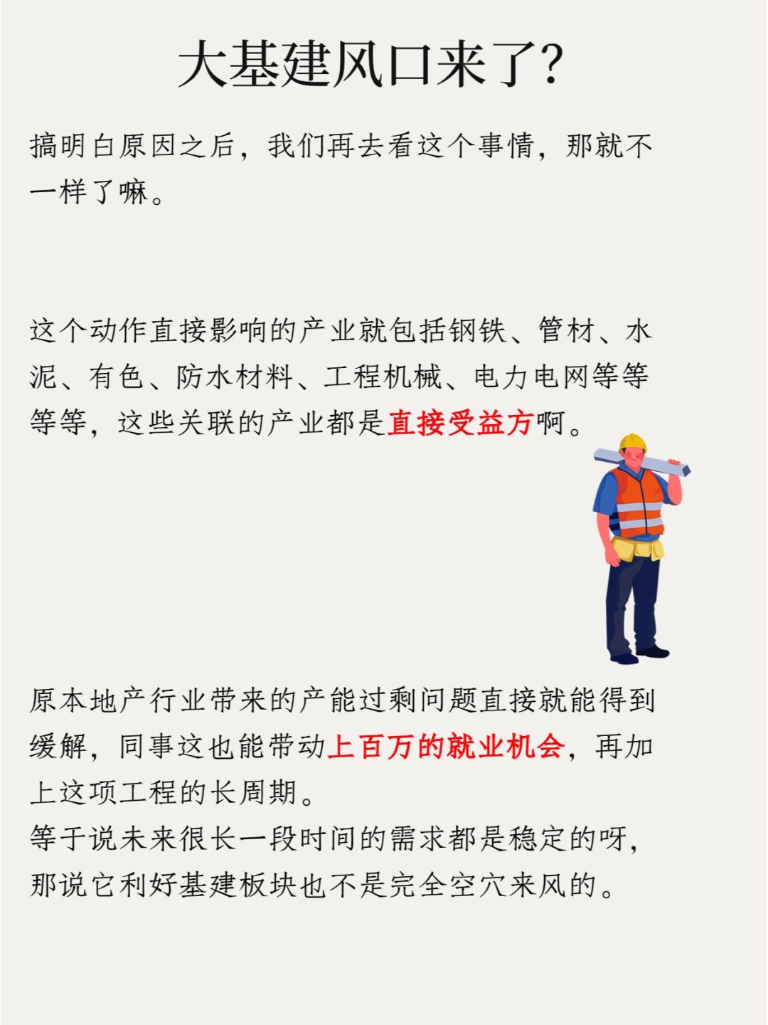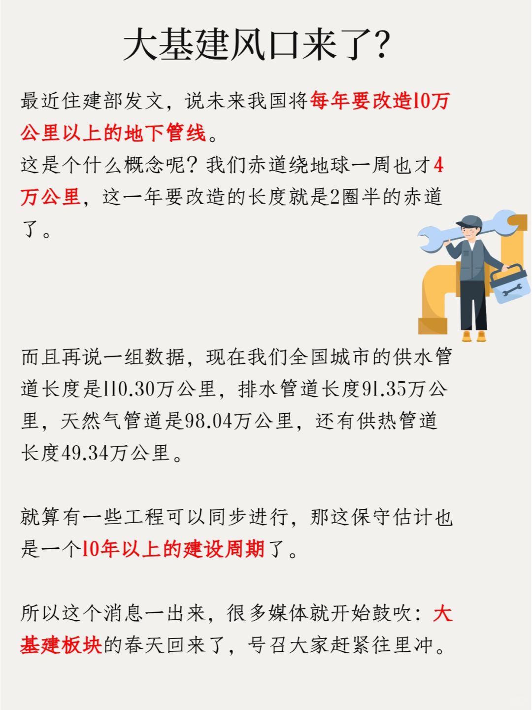 所以这个消息一出来,很多媒体就开始鼓吹:大基建板块的春天回来了,号召大家赶紧往里冲。