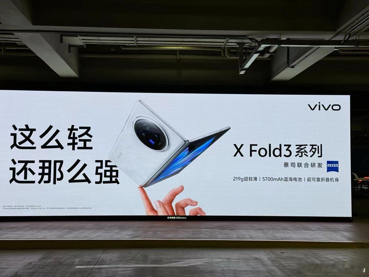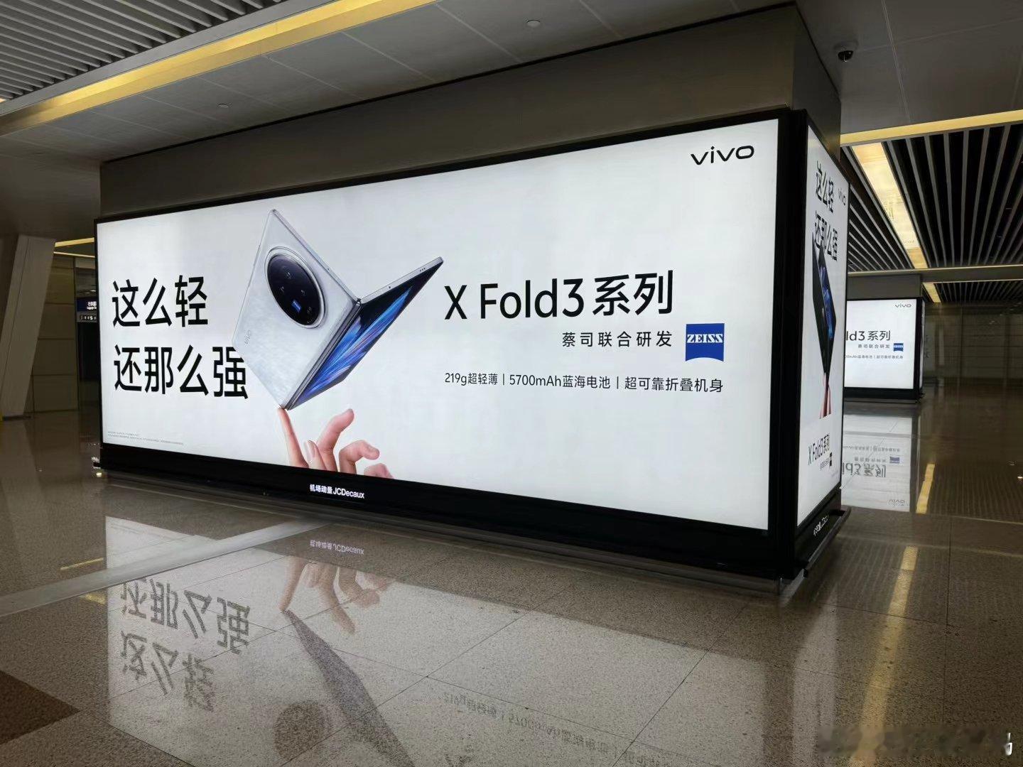 vivo X Fold3发布会真的豪啊,机场广告牌这是包圆了么?一眼望去全是,这么轻,还那么强的广告语!看来这一次的折叠屏主打一个轻薄哦,再加上广告牌下面的大电池介绍,看来轻薄,长续航肯定是稳了。大家觉得价格会不会也很强呢?