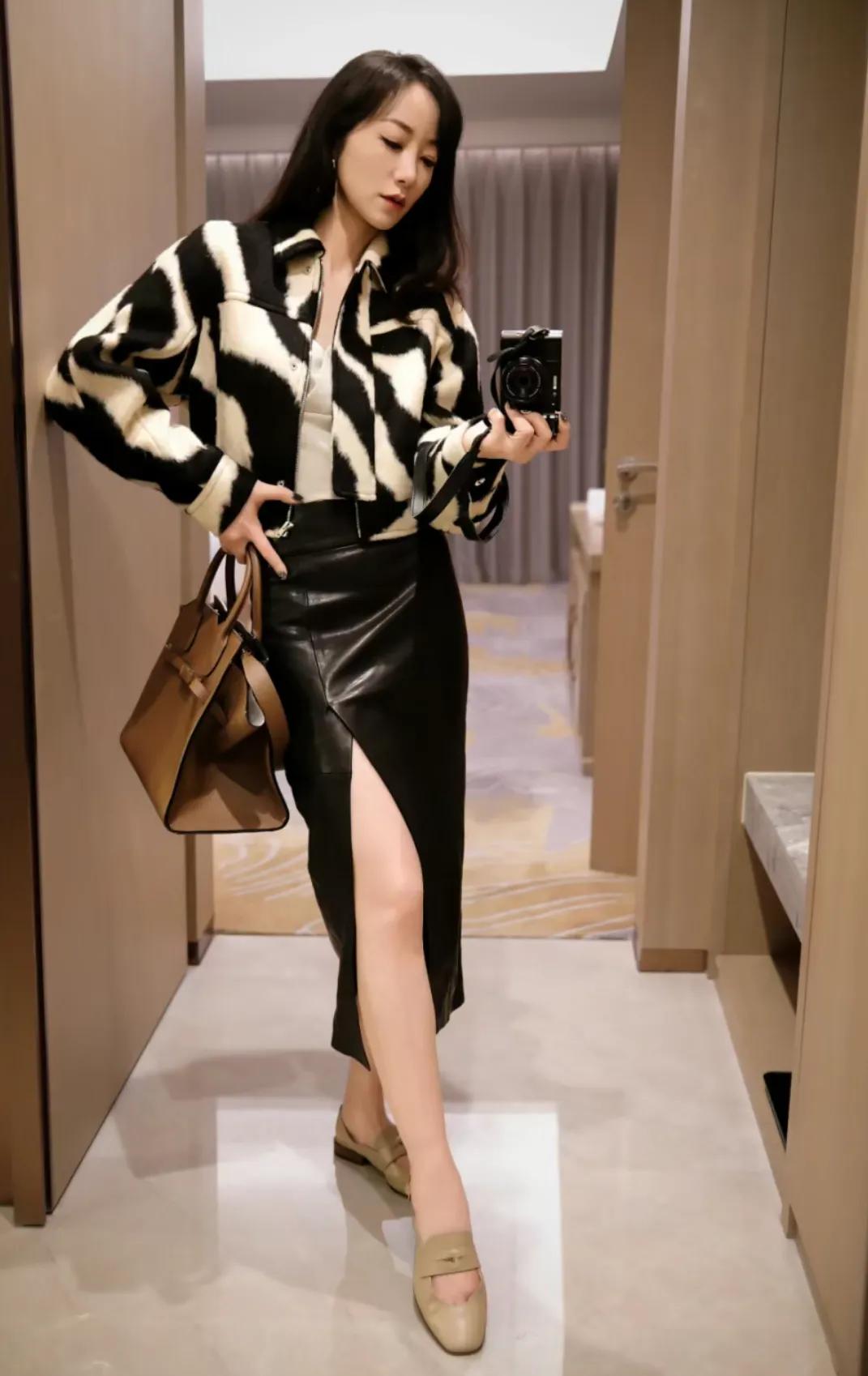 韩雪对镜自拍照,这套搭得无可挑剔,审美在线,特别的有御姐范儿,又酷又飒。41岁的韩雪状态非常的好,她好像越来越瘦了,身材保持的特别好 #妙笔生花#