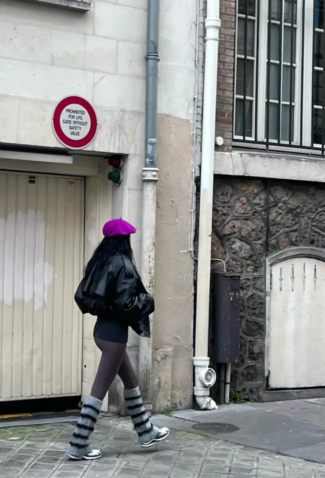 赵昭仪巴黎街头照片,这一顶紫色贝雷帽和她好搭,就是这裤子这样穿真的很尴尬,搞不懂明星的时尚,穿秋裤即视感 #妙笔生花#