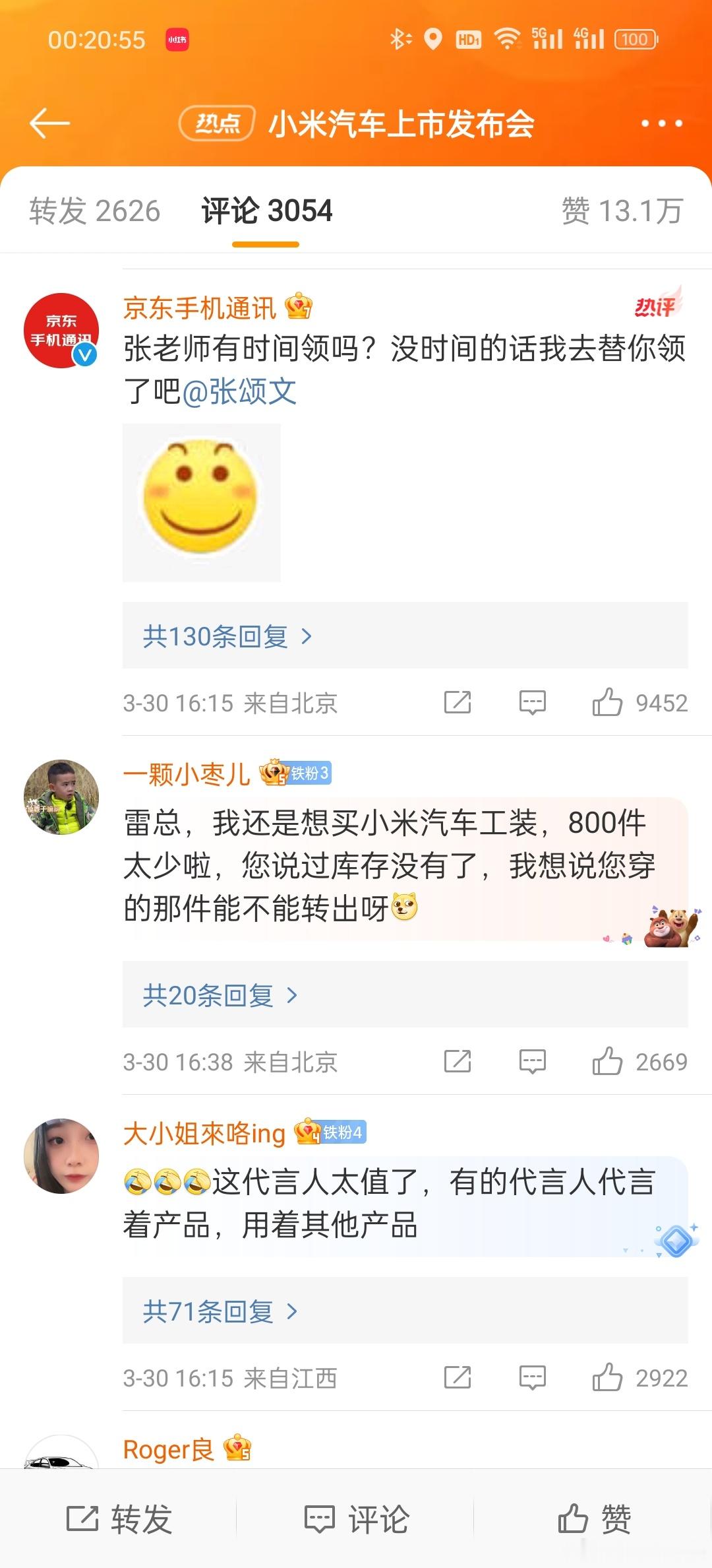 网友:雷军没给你准备一辆?