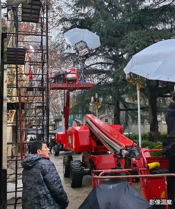 开机仪式在西影基地的一个大房子举行,这是工作人员在室外紧张布置拍摄现场:
