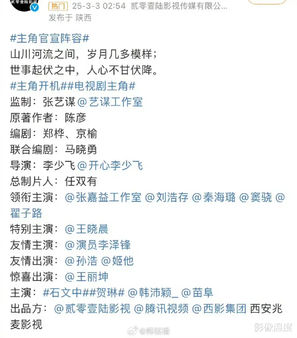 张艺谋导演监制的电视剧《主角》终于开拍了!